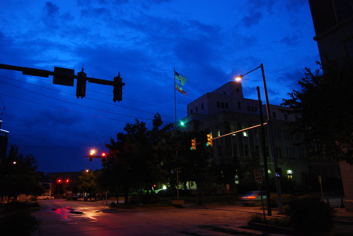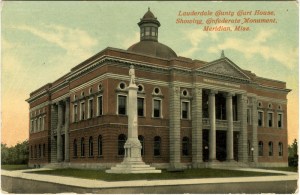 Above is a view of the courthouse as it appears today. It shows the DA’s office lit up in trial preparation on a rainy evening. This unusual photo was taken by Meridianite Ken Flynt, and is used with his permission.