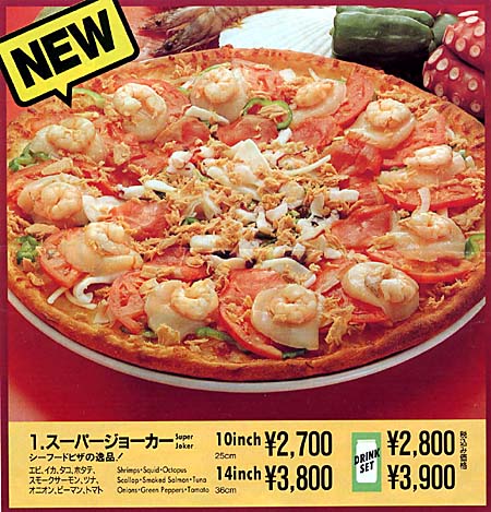 - The Web’s First Japanese Pizza Page is guaranteed to whet your appetite with the likes of shrimp, squid, tuna and mayonnaise pizza, or the squid ink pizza, which uses squid ink in lieu of tomato sauce. Yum!