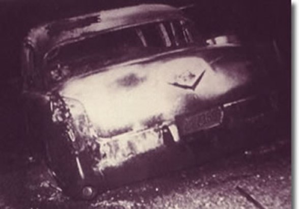 Neither Elvis nor his passenger were hurt, but Elvis was probably sad to see his dream car, the one he rode on in the Meridian parade, in flames.